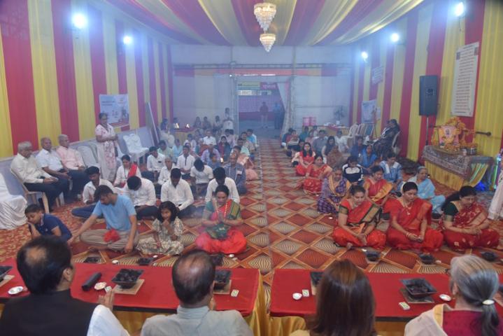 वातावरण निर्जंतुक करणारे, शुद्धता येऊन पवित्रता वाढवणारे अग्निहोत्र करताना भाविक- सामुदायिक अग्निहोत्र 2025